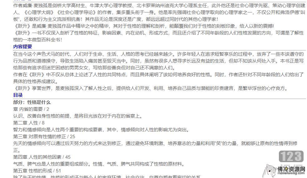 《跃升》是威廉·麦独孤作品中最具有代表性的一本著作,书中内容不仅深入剖析了性格的特征、影响因素、内在动机、形成方式,而且还介绍了不同年龄段的人们性格发展的方向,可谓是了解性格的一本微型百科全书!