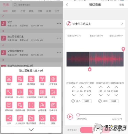 功能也是非常强大的各种各样的功能选择如支持音频剪切、拼接合成、混音、音频格式转换视频转音频、变音、变速、变调等。