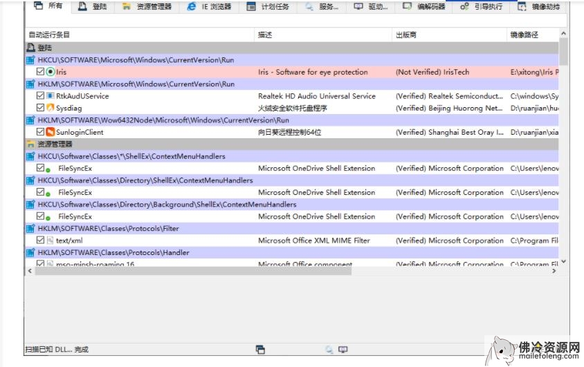 还可以为大家进行资源管理器右键扩展,IE浏览器插件,系统服务和驱动、计划任务、镜像劫持等。