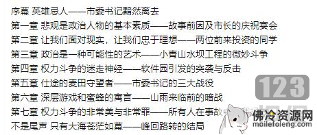 这部小说不同于一般的官场小说。它以宏大而真实的视角描绘了中国官场主义社会中人们的奋斗与挣扎。脱正的官场小说是从官场和人性的角度来看,它就像一套中国的官场教科书,很精彩,也很悲伤。那些喜欢官场小说的人